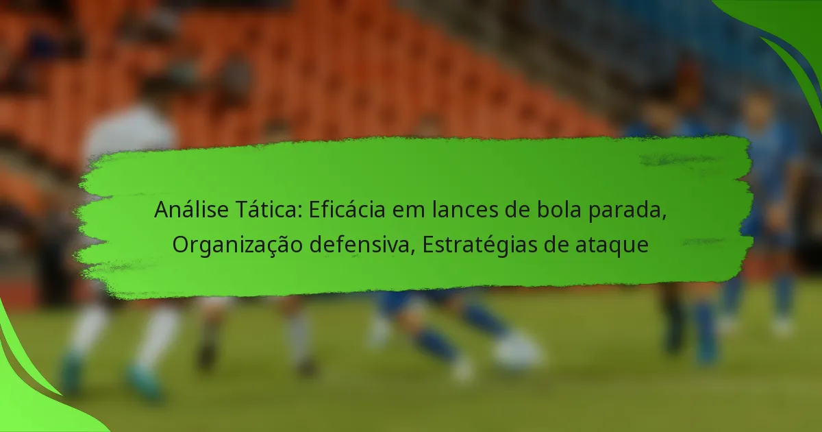 A análise tática no futebol abrange três componentes críticos: eficácia em lances de bola parada, organização defensiva e estratégias de ataque. As situações de bola parada apresentam oportunidades valiosas para marcar, enquanto a organização defensiva foca em prevenir golos através de formações estruturadas e comunicação. Entretanto, estratégias de ataque eficazes envolvem movimentos coordenados e táticas inovadoras para explorar as fraquezas do adversário e criar oportunidades de golo.
